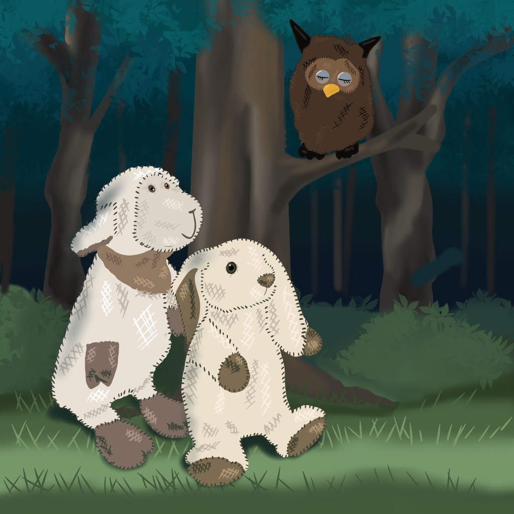 Form von Kuscheltieren. Alle abgebildeten Tiere