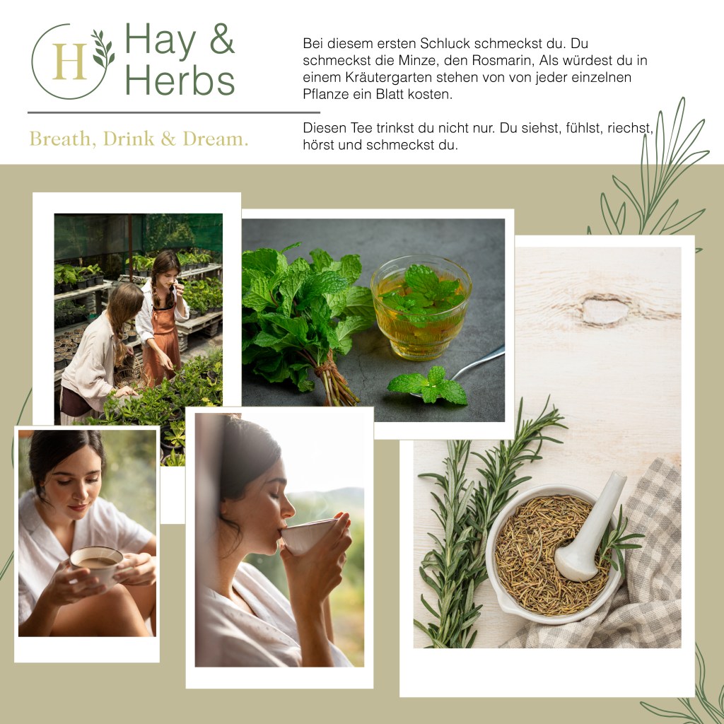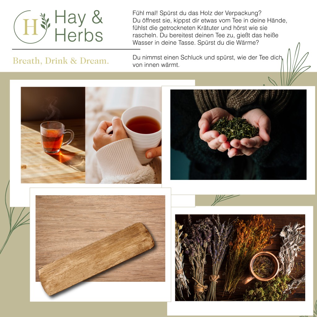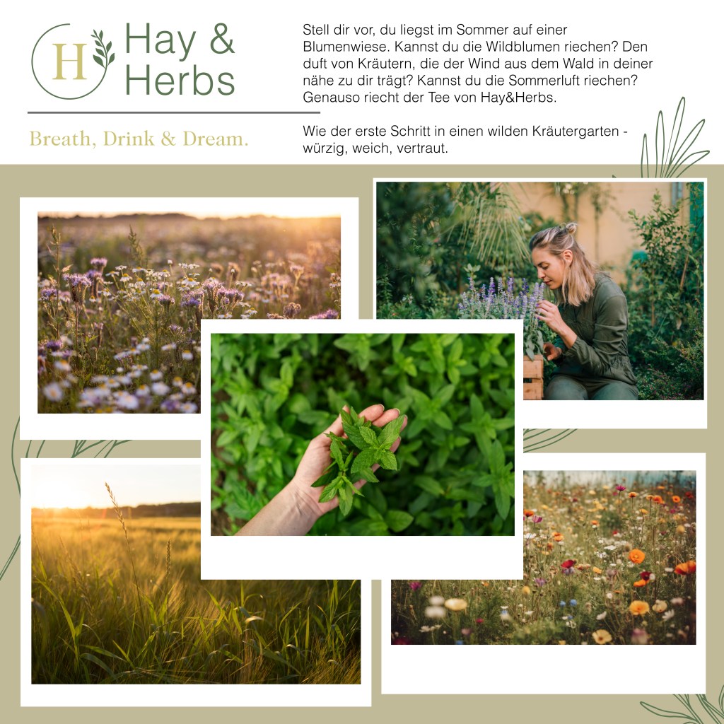 Mit meinem fiktiven Projekt hay & herbs habe ich genau das versucht: Eine kleine, sanfte Kräutertee-Marke, die über die Sinne spricht. Nicht laut, sondern leise. Wie der Sommer, wenn man ihn wirklich spürt.
